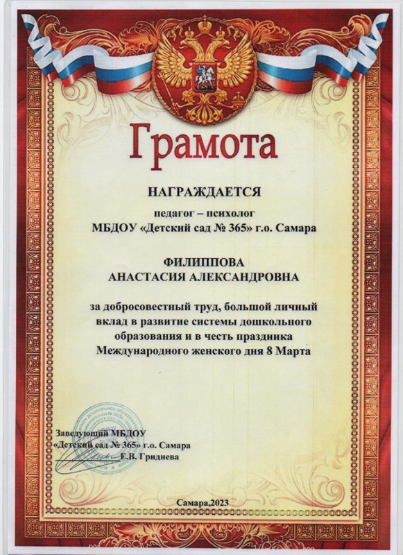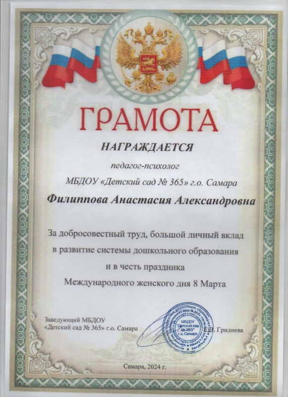 | «Организация образовательной деятельности с детьми раннего возраста в условиях ДОО» | 23.11.2023г. — 22.05.2024г. | 36 | Муниципальное бюджетное образовательное учреждение организации дополнительного профессионального образования «Центр развития образования» г.о. Самара | Удостоверение № 632421858335 |